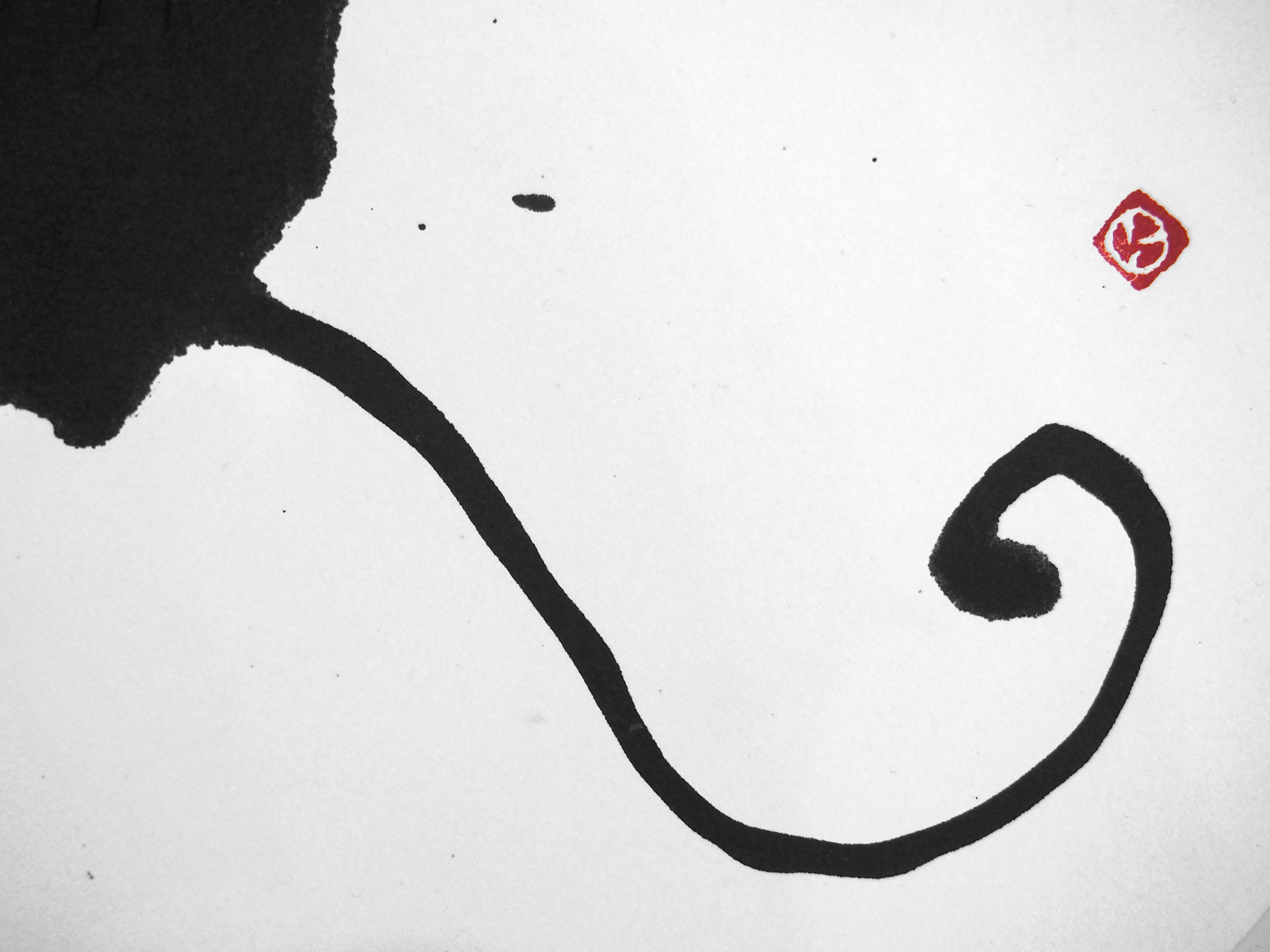 雲の雨冠をとった云がオリジナルの形。竜が天にいたものと思われ、尻尾が雲から垂れ下がっている。 The original form of cloud is only the bottom part(云). It is thought to have been a dragon dwelling in the heaven, with its tail hanging down from the clouds.